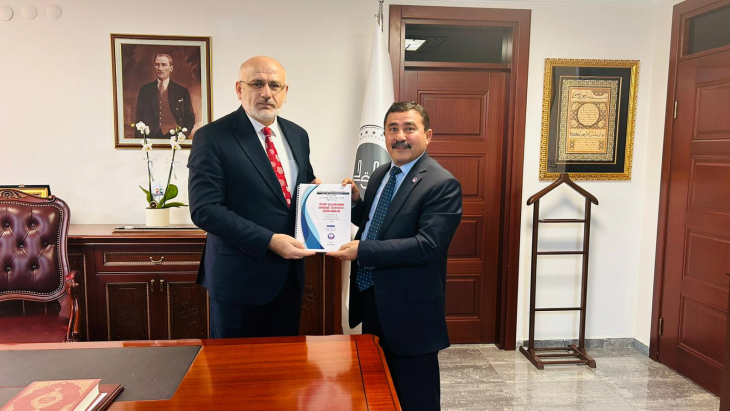 Kendisine Diyanet İşleri Başkanlığımıza sunduğumuz, Diyanet çalışanlarının sorunları, talepleri ve çözüm önerilerini içeren 130 sayfalık raporumuzu takdim ettik.